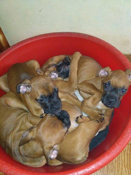 Чистокровный немецкий боксер,с первой прививкой и пасспортом,родились 17.08.2017, 2 мальчика и 2 девочки